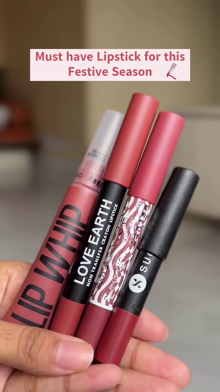 • The Festive Season Lipstick Set is a curated collection of 4 versatile lip products designed to offer you the perfect combination of color, texture, and wearability for any occasion. With a mix of matte, non-transfer crayon, and lip whip, this set guarantees you can achieve a flawless, long-lasting lip look, whether you’re at a festive gathering or out on the town.