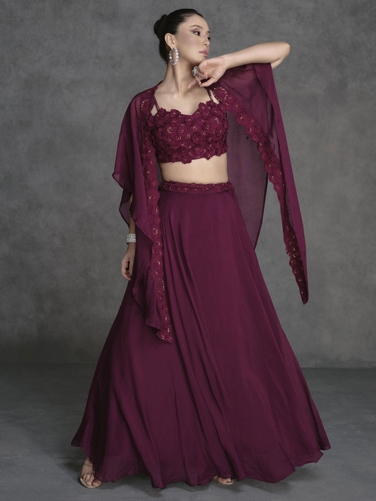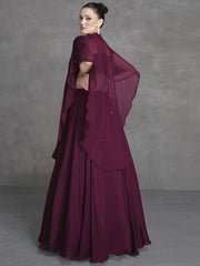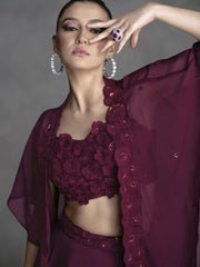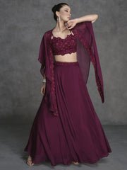Deep Wine Appliqué Embroidered Cape Style Lehenga