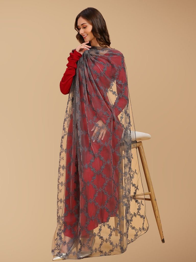 + Free ShippingAdd a touch of elegance to your wardrobe with this pretty piece of embroidered Net Dupatta. Swathed with floral embroidery all over this versatile stunner is a must in your collection.