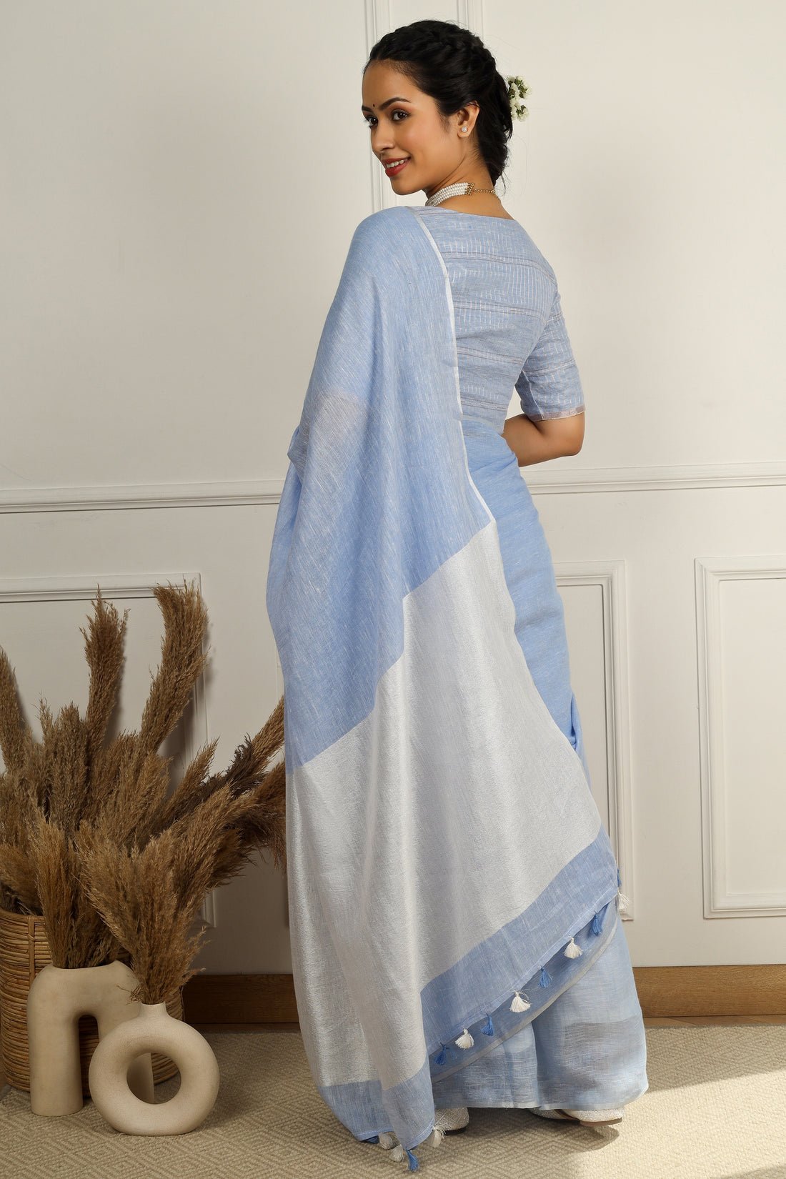 Falguni Powder Blue Solid Linen Sari