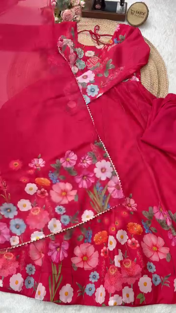 Floral Printed Soft Fabric Kurti Set with Organza Dupatta and Delicate Embroidery – Available in Elegant Shades for Festive and Everyday Ethnic Wear