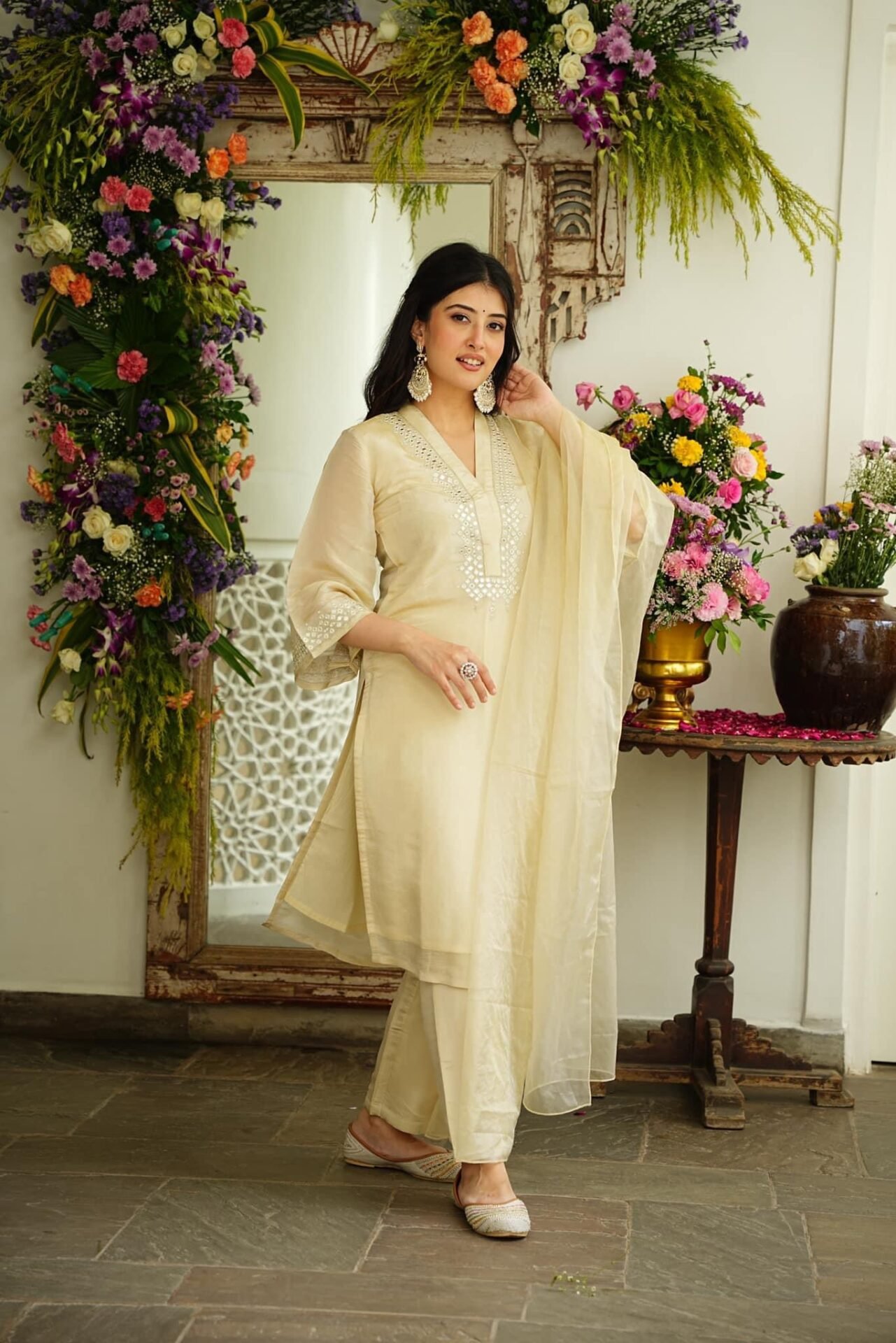 • Fabric – Cosmos (Mirror embroidery over neck-line)