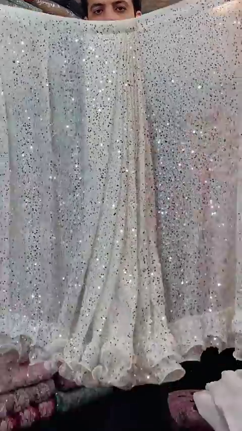 + Free ShippingName : White Georgette designer Saree with all over seqwance work and blouse