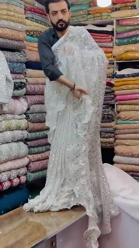 White Georgette designer Saree with all over seqwance work and blouse