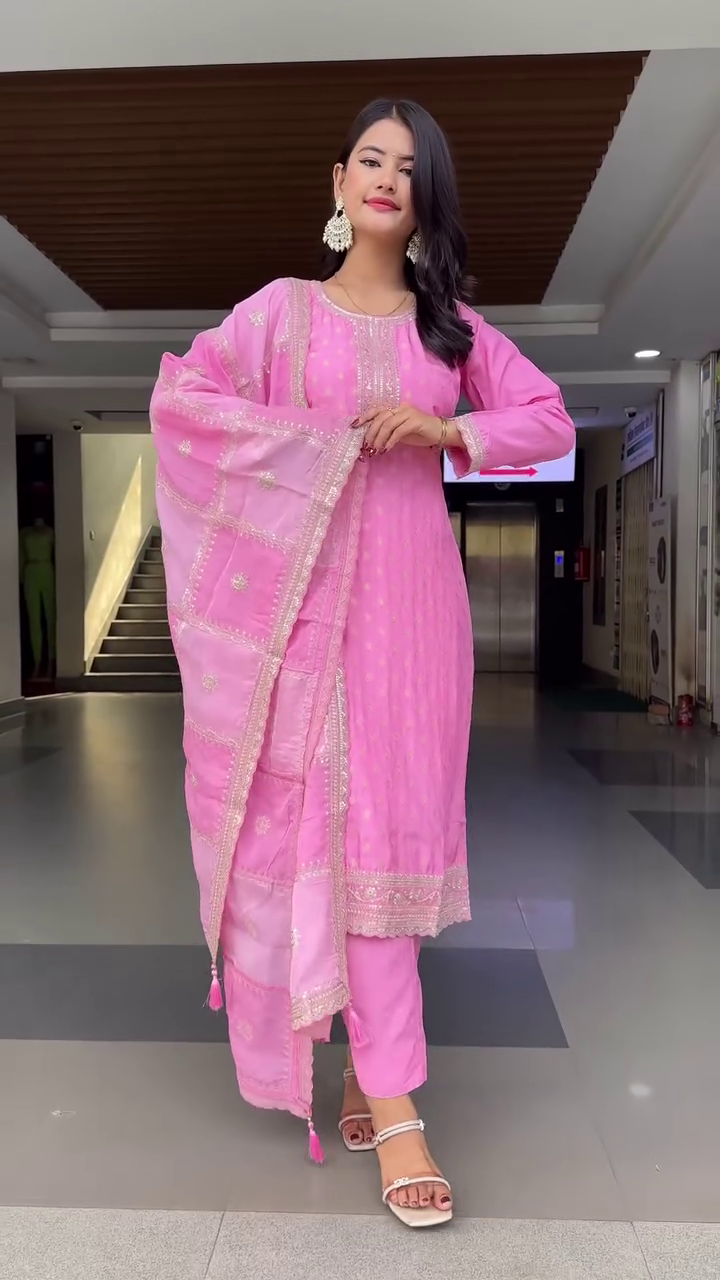 Elevate your festive wardrobe with this elegantly crafted Embroidered Straight Kurta Set, available in two stunning color options: a calming aqua blue and a lively vibrant pink. Designed for comfort and style, this traditional set blends contemporary charm with classic ethnic detailing. Featuring delicate sequin embroidery, gota lace borders, and a graceful organza dupatta, it is a perfect choice for festive gatherings, weddings, and special celebrations.