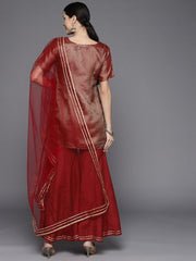 Women Maroon Gotta Patti Kurta with Sharara & With Dupatta