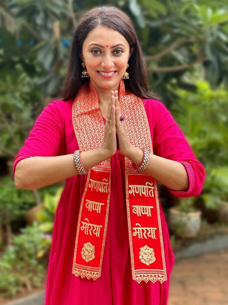 Women’s Ganpati Bappa Morya Stole in Red and Gold